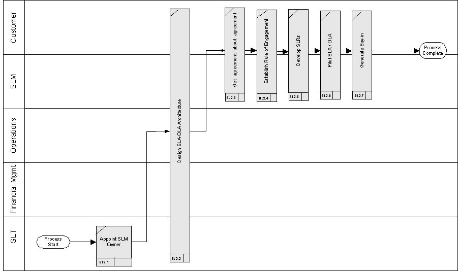 Using the catalogue as an aid, SLM must plan the most appropriate SLA - OLA structure to ensure that all services and all Customers are covered in a manner best suited to the organization's needs. It is recommended that the architecture be adopted which establishes:
