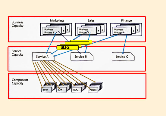 Figure 5.11 Connecting business, service and component capacity management |