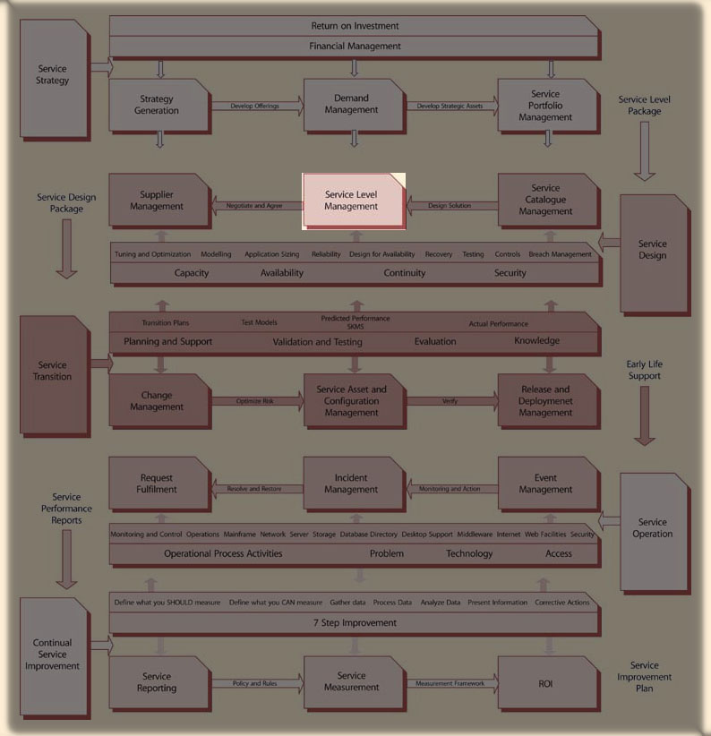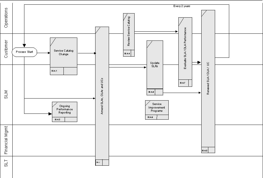 Unlike many ITIL processes which have a lifecycle measured in days or weeks, the service management lifecycle can be measured in years. The task of negotiating SLAs is so extensive that its' review and re-negotiation may not be warranted even on an annual basis. Many IT organizations operate on a charge-back and break-even basis where the costs of providing services, while apportioned annually according to formulae, are not subject to intense annual review and operational assessment.